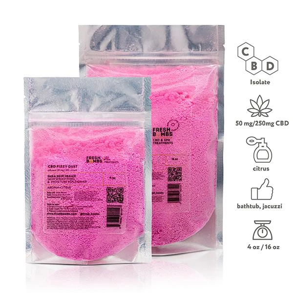 CBD Fizzy Dust by Fresh Bombs is a perfectly formulated mix of natural salts and essential oils great for use after a long day, intense exercise and more. Pamper your skin with these high quality blends, not only nourishing but allowing your body and mind to unwind into pure bliss and relaxation.Â