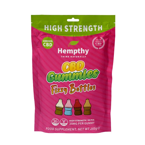 Deliciously sour gummy sweets mixed with Hempthy’s Finest Grade CBD. Our CBD fizzy bottles are a quick and simple way to get the health advantages that CBD supplementation has to offer without sacrificing the bubbly fizz you desire.