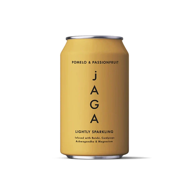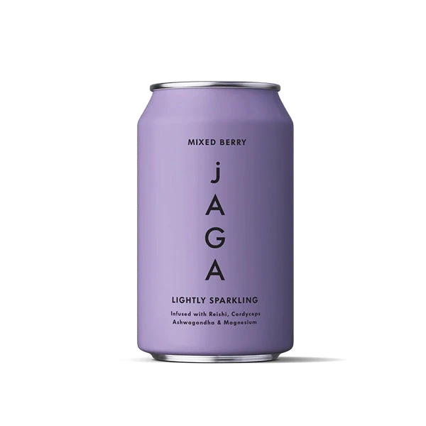 jAGA Lightly Sparkling Drinks – a harmonious fusion of apoptogenic Reishi and Cordyceps mushrooms, combined with the soothing qualities of ashwagandha, the relaxation of magnesium, and the tranquillity of L-Tryptophan and L-Theanine.