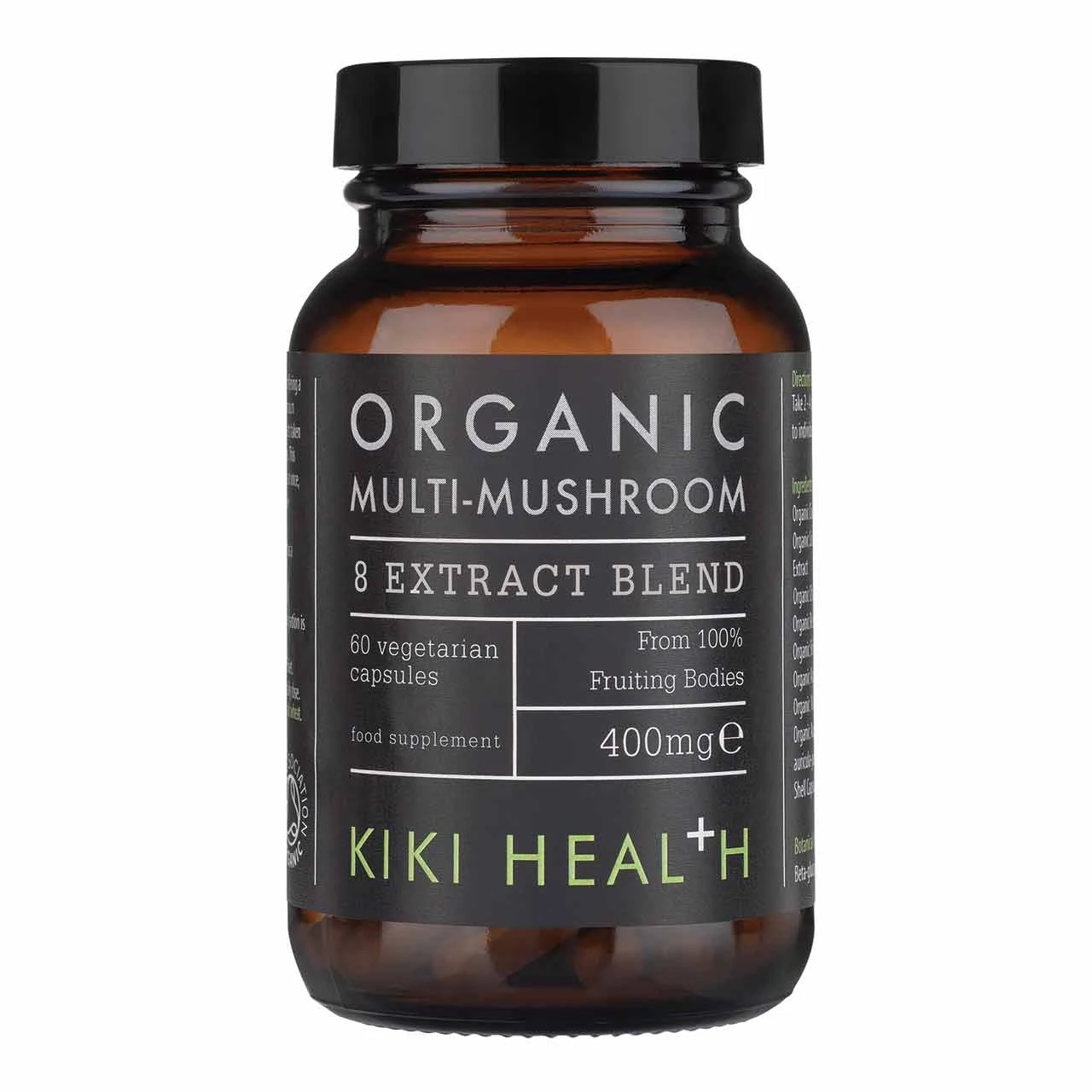 KIKI Health Organic Multi-Mushroom 8 Extract Blend is a blend of eight organic mushroom extracts from the fruiting bodies – offering high potency broad-spectrum formula standardised for efficacy.