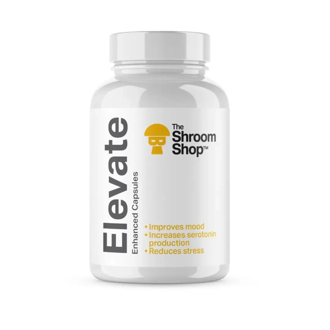 The Shroom Shop Elevate Capsules provide an easy and effective way to stay balanced and stress-free, whatever life throws at you. Enjoy feeling cheerful, peaceful and relaxed day after day. With the help of specially chosen nootropics and adaptogens, Elevate promotes well-being and alleviates stress, fatigue and other negative effects of modern life. It helps you reach your peak performance so that you can have a clear mind and feel your best.